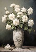 Dit schilderachtige kunstwerk, genaamd 'White Blossom', is een antiek stilleven van witte bloemen vastgelegd in de subtiele tinten van aquarel. De compositie straalt een tijdloze elegantie uit, als een vergeten moment uit het verleden, waarin de pracht van witte bloesems wordt vereeuwigd.