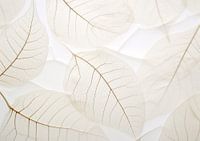 Prachte serene afbeelding van witte doorschijnende blaadjes op een witte zijdeachtige achtergrond. Passend bij diverse stijlen en trends zoals botanisch, wit en naturel. Minimalistich. Verfijnd. Modern Abstract. Botanisch. Wit.