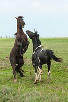 twee hengsten vechten voor het leiderschap in het buitengebied van noord friesland