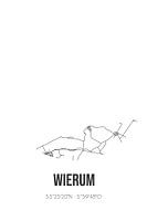 Zwart-witte landkaart, stratenplan of plattegrond van Wierum. Wierum is gelegen in de gemeente Noardeast-Fryslan, provincie Fryslan. Op de stadskaart zijn alle openbare wegen in Wierum opgenomen. Verder is de kaart voorzien van de coördinaten van het centrum van Wierum.