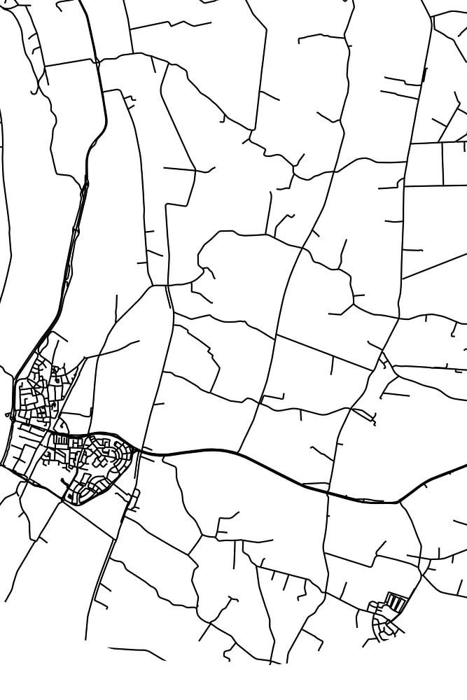 Zwart-witte landkaart, stratenplan of plattegrond van Wijhe. Wijhe is gelegen in de gemeente Olst-Wijhe, provincie Overijssel. Op de stadskaart zijn alle openbare wegen in Wijhe opgenomen. Verder is de kaart voorzien van de coördinaten van het centrum van Wijhe.