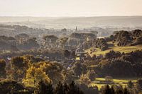 Uitzicht vanaf de Schaelsberg in Walem op Schin op Geul in de voorgrond, de kerk van Wijlre centraal en de kerk van Vijlen in de achtergrond