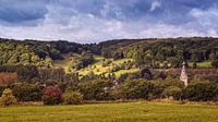Het Zuid-Limburgse Heuvelland rond Wijlre met op de achtergrond de bossen van de Dolsberg gezien vanaf de Dikkebuiksweg in Wijlre (Limburg, Nederland).