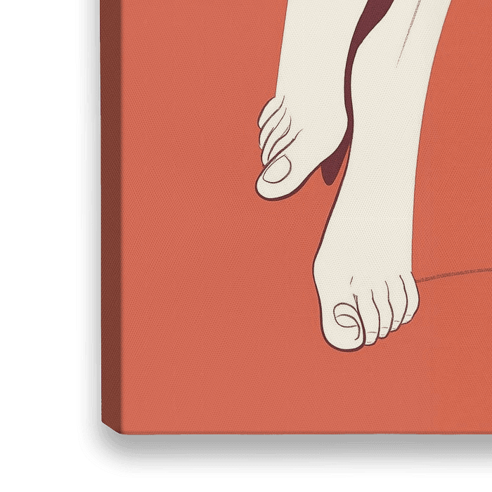 Een kunstdruk van dansende vrouwenvoeten en een glas rode wijn