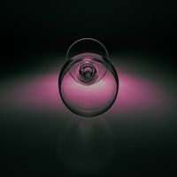 Wijn glas op zacht paarse gekleurde ondergrond. Deze unieke foto maakt van een dagelijks object iets speciaals door het op een andere manier te fotograferen en te bekijken en dit in combinatie met een creatieve belichting