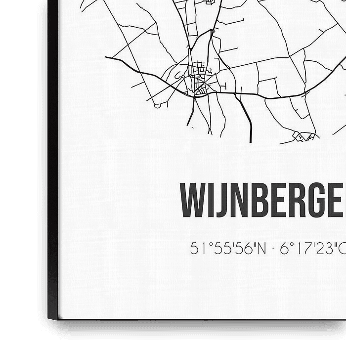 Koop dit abstracte kunstwerk Wijnbergen (Gelderland) | Landkaart | Zwart-wit van Stad & Wand op canvas, aluminium dibond, (ingelijste) fotoprint, behang en ArtFrame, op maat geprint in Fine-Art kwaliteit.