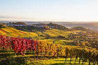 Wijngaarden in de herfst en uitzicht op de grafkapel op de Württemberg, Stuttgart-Rotenberg, Stuttgart, Duitsland.
