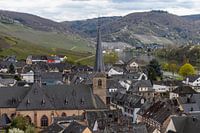 Uitzicht op het Moezeldal met op de voorgrond het wijndorp Graach en op de achtergrond de stad Bernkastel-Kues