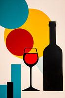 Hier ontvouwt zich een spel van vormen en kleuren: Een gestileerde wijnfles, een elegant glas en levendige geometrische cirkels creëren een uitnodigende sfeer. Deze moderne compositie trekt de aandacht en harmonieert perfect met de keuken- of eetkameromgeving, ideaal voor gezellige avonden of ontspannen momenten.