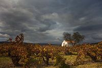 Een kleine wijngaard en een klein huisje, gelegen nabij Teulada, Spanje aan de Costa Blanca.