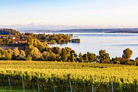 Wijnbouw bij Überlingen, Bodenmeer, Baden-Württemberg, Duitsland.