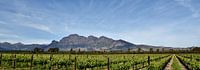 Landschap met wijngaarden en bergen in de Kaapse Wijnlanden in Stellenbosch