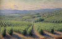 Wijngaarden in de Elzas met zicht op de Vogezen. Een schilderij in de stijl van Camille Pissarro