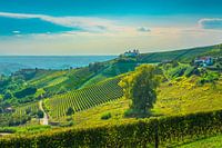 Wijngaarden op de heuvels van de Langhe in de ochtend, Unesco werelderfgoed.