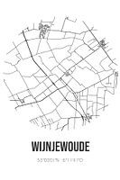 Zwart-witte landkaart, stratenplan of plattegrond van Wijnjewoude. Wijnjewoude is gelegen in de gemeente Opsterland, provincie Fryslan. Op de stadskaart zijn alle openbare wegen in Wijnjewoude opgenomen. Verder is de kaart voorzien van de coördinaten van het centrum van Wijnjewoude.
