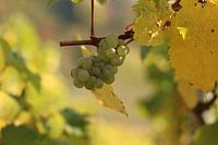 Mooie witte druiventros aan de wijnstok in de druivenboomgaard in Saarburg (Duitsland).