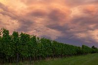 Wijnvelden in de Elzas, Frankrijk tijdens zonsondergang. De Elzas staat niet alleen bekend om de vakwerkhuisjes, maar ook om de wijn. In de omgeving van Colmar vind je kleine plaatsjes als Riquewihr, Truckheim, Kayserberg, Bergheim en Eguisheim. Allen gelegen tussen de wijnvelden van de Elzas