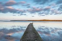 Een zonsondergang, een spiegelend meer, wolken die voorbijtrekken en langzaam mee kleuren met de ondergaande zon. De opkomende duisternis wordt ingeluid door een kleurenspektakel aan de hemel. Het eiland Öland, zoveel te bieden, zoveel te zien. De aanlegsteiger vlakbij het Nationale park Trollskogen wijst naar de horizon.