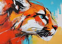 Details: tijger, dier, dieren schilderij, oranje, blauw, wit, zwart, dynamisch, expressief, kracht