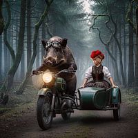 Dit ongewone motief breekt met elk cliché: onze Mystic Lady uit het Zwarte Woud in de traditionele Bollenhut laat zich niet chauffeuren in een koets - ze bedwingt de mistige paden van de Tannenfrost in…