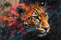 "Wild Vuur" brengt de ongetemde schoonheid van een luipaard tot leven door een explosie van vurige kleuren en energieke penseelstreken. De kunstenaar gebruikt intensieve tinten van oranje, roze en turquoise tegen een donkere achtergrond, wat een dynamisch contrast creëert. Het luipaard wordt weergegeven met een nauwkeurigheid die zijn majestueuze en krachtige uitstraling benadrukt. Dit schilderij, met zijn combinatie van realisme en abstractie, is een perfecte aanvulling voor moderne interieurs die op zoek zijn naar een gedurfd en expressief kunstwerk dat zowel kracht als elegantie uitstraalt.