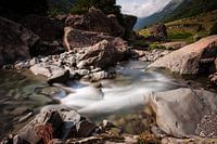 Water in dit riviertje raast tussen de rotsen en stenen door. Frankrijk heeft een schitterend landschap, vooral in de uitlopers van de Pyreneeën.