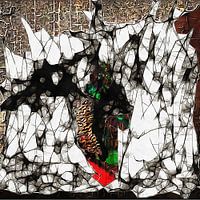 Dit is een digitale creatie, gebaseerd op een eenvingerige krabbel met Scribbler Too software, die interessanter werd naarmate ik ermee speelde. Het werd uiteindelijk een impressionistisch bos, dus voegde ik de snuit van een wild zwijn toe dat door de bomen tevoorschijn kwam.