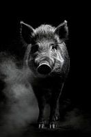Een majestueus everzwijn komt tevoorschijn in mysterieus licht. Zijn stralende ogen steken af tegen de donkere achtergrond. De mist omhult het zwijn zachtjes en geeft het tafereel een dramatisch tintje. Dit kunstwerk is perfect voor de woonkamer en brengt een vleugje wildernis en karakter in de kamer.