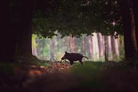 Een wild zwijn in een mooi laantje ergens op de Veluwe