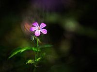 Close-up van een Wilde Geranium gefotografeerd op een spaarzaam verlichte plek in het bos bij Slenaken in het Zuid-Limburgse Heuvelland.