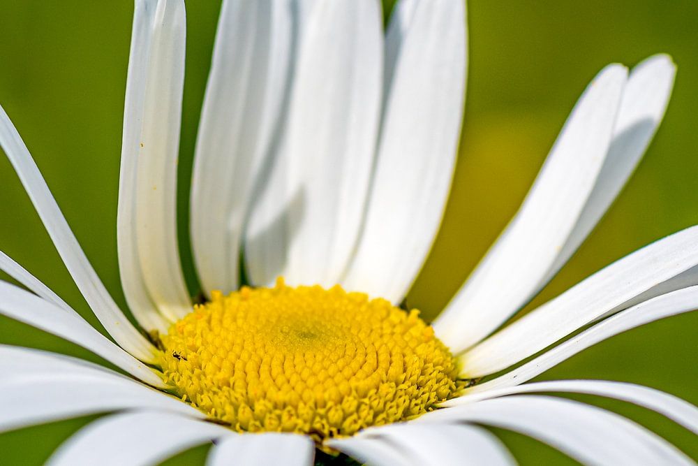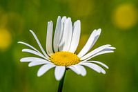 Macro opname van en wilde margriet met boterbloemen in de achtergrond