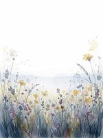 Een dromerig aquarel geïnspireerd veld van wilde tropische bloemen in zachte pasteltinten. Perfect voor natuurliefhebbers die rust en sereniteit zoeken in hun wandkunst