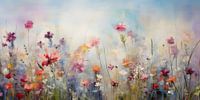 Een kleurrijk digitaal schilderij met dromerige wilde tuin vol met bloemen. Het werk geeft een dromerige en klassieke uitstraling aan uw interieur!