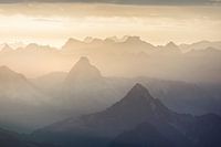Zonsopkomst over de bergtoppen van de Alpen op een zomerse dag, gezien vanaf de top van Mount Pilatus in Zwitserland.