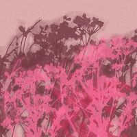 Collage van een monotype van echte bloemen gecombineerd met kleurtexturen.