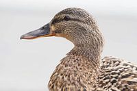 Een close-up van een wilde eend vrouwtje. Net uit het water gekomen was het verendek nog nat. Gefotografeerd op een vakantiepark in Scharendijke.