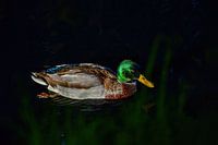 Deze wilde eend trof ik op een donkere dag in een slootje in Bemmel. De zon kwam even door en viel precies op de eend waardoor zijn kleuren prachtig uitkwamen.