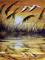 Koop dit vogel kunstwerk Wilde ganzen in de herfstzon van Christine Nöhmeier als print op canvas, aluminium dibond, (ingelijste) fotoprint, behang en ArtFrame. Voor jou op maat geprint in Fine-Art kwaliteit.