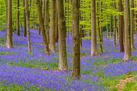 In de lente verandert het Hallerbos in België in een magisch, bijna buitenaards tafereel wanneer miljoenen blauwe bosbloemen over de bosbodem bloeien. Deze delicate bloemen vormen een dik, violetblauw tapijt dat zich uitstrekt zover het oog reikt en zich weeft tussen de hoge, slanke stammen van eeuwenoude beukenbomen.