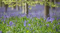 paars blauwe boshyacinten (hyacinthoides non-cripta) bloeien in het voorjaar in het Hallerbos, de beukenbomen hebben hun eerste lichtgroene blaadjes