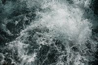 Op de foto zie je een gedetailleerd beeld van opspattend water, dat zich wild beweegt. De kleur van het water is groen, waarschijnlijk door de weerspiegeling van de natuur eromheen of door algen in het water. Het water spat krachtig op, wat wijst op de nabijheid van een waterval. De opname legt de beweging van het water vast in het…