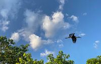 Koop dit vogel kunstwerk Wilde ooievaar vliegt over de jungle. van Floyd Angenent op canvas, aluminium dibond, (ingelijste) fotoprint, behang en ArtFrame, op maat geprint in Fine-Art kwaliteit.