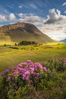 Wilde rododendron in Glen Etive, Hooglanden, Schotland, Groot-Brittannië