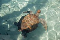 Wilde schildpad op Curacao. Ze zwemmen bij de kust in de oceaan.