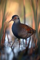 Wilde vijverral in het riet van Poster Art Shop