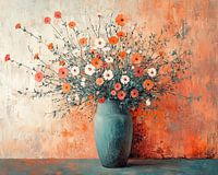 Wildfire Floral Symphony - kleurrijk bloemstilleven in vaas op abstracte achtergrond