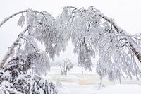 Eiland in de Wildsee in het Wildseemoor, een veengebied in het natuur- en bosreservaat Kaltenbronn in de winter, gelegen bij Kaltenbronn in het noordelijke Zwarte Woud tussen Gernsbach en Bad Wildbad, Zwarte Woud, Baden-Württemberg, Duitsland