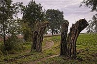 Oude en versleten wilgen langs een slingerend pad door de velden tussen het Zuid-Limburgse Swier en Weustenrade.