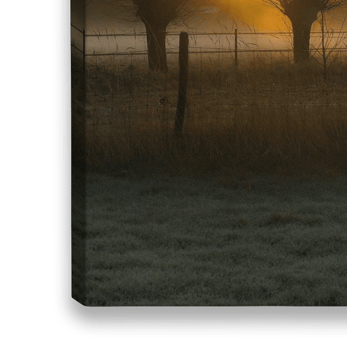 Bladloze wilgen in de koude opkomende ochtend zon.