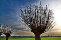 Winter. De wilgen staan er kaal bij. Een dreigend onweer.